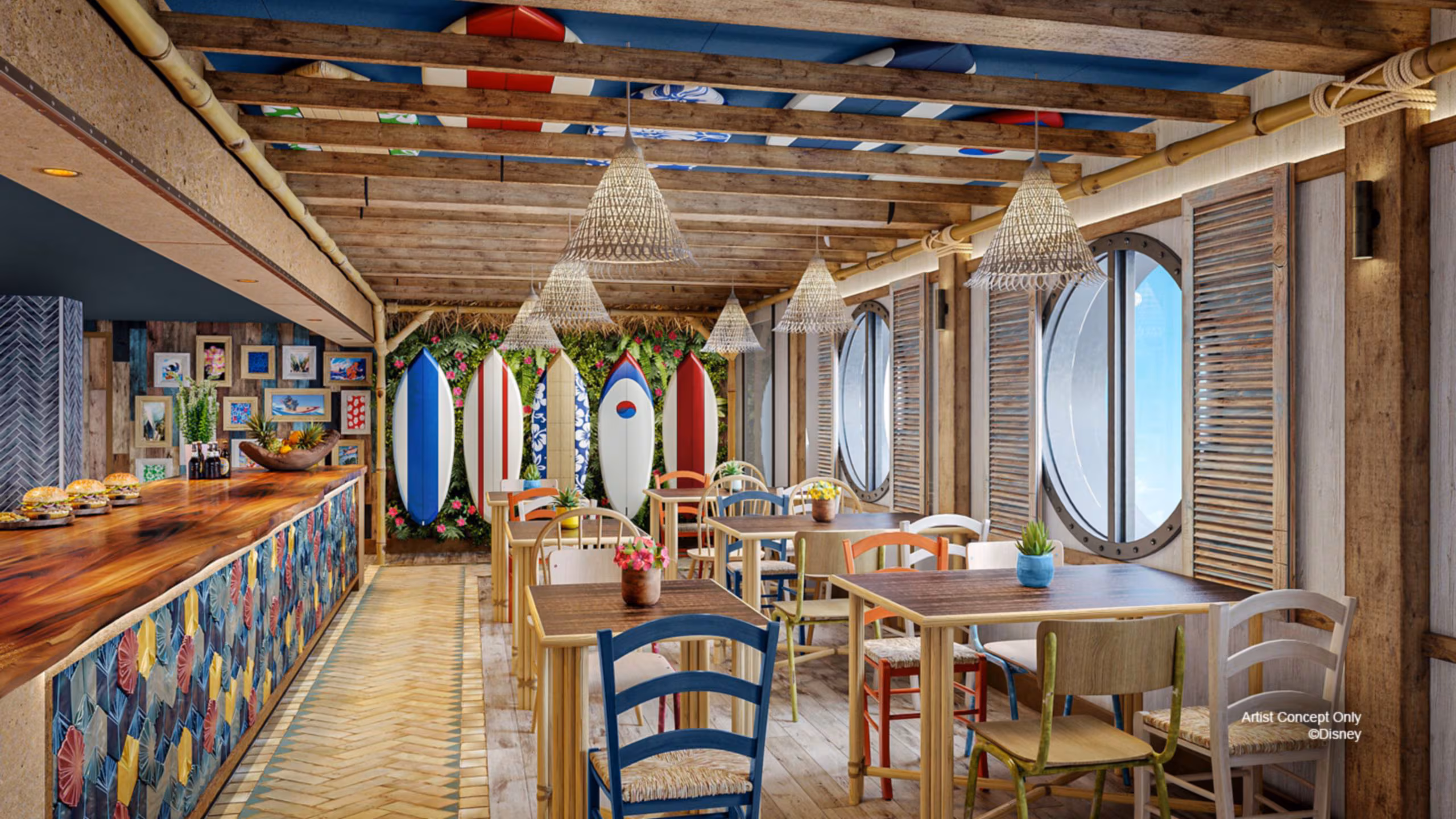 Aloha, sejam bem-vindos a um restaurante descontraído inspirado em Lilo & Stitch. Delicie-se com petiscos americanos clássicos, como hambúrgueres suculentos e sanduíches generosos, todos servidos com um toque do estilo da ilha. Relaxe neste ponto de encontro costeiro, decorado com pranchas de surfe e fibra de ráfia enquanto aproveita o clima agradável e hospitaleiro da Costa Norte do Havaí.