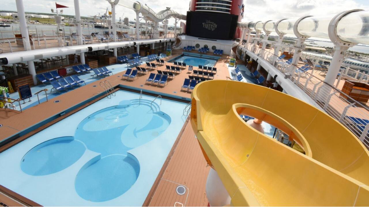Uma das 3 piscinas de água doce do Disney Dream e do Disney Fantasy, a Donald's Pool é o lugar para diversão em família ao sol.