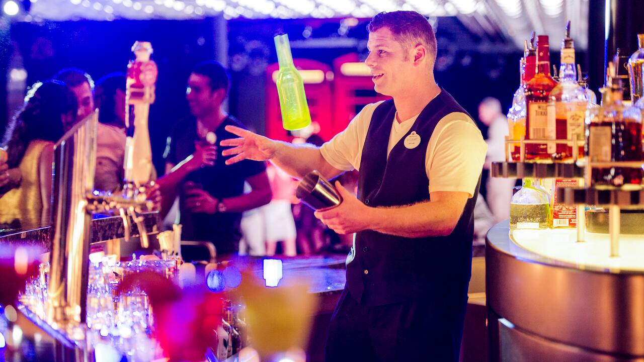 Inspirado no metrô de Londres, com sua vibração metropolitana e decoração icônica, este elegante clube é um refúgio moderno para visitantes adultos. Festeje até tarde da noite em uma pista de dança completa com uma bandeira da União Britânica iluminada pelo palco. Misture-se em meio a móveis modernos, onde um mapa de rotas de trem é o motivo do tapete, os sofás macios lembram um padrão de passagem de trem e cabines telefônicas vermelhas são salpicadas por todo o clube.