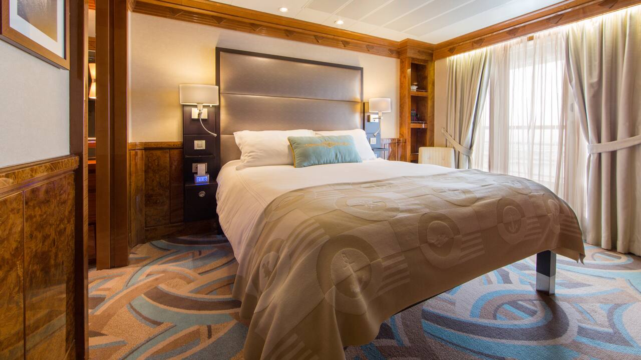 Um refúgio luxuoso para até 7 hóspedes, estes quartos espaçosos oferecem comodidades de luxo e serviços exclusivos de concierge. As suítes Concierge de 2 quartos com varanda são classificadas como categoria S e estão localizadas no convés 8, proa. A partir das viagens em 2022, as suítes Concierge de 2 quartos com varanda serão classificadas como categoria 1B.