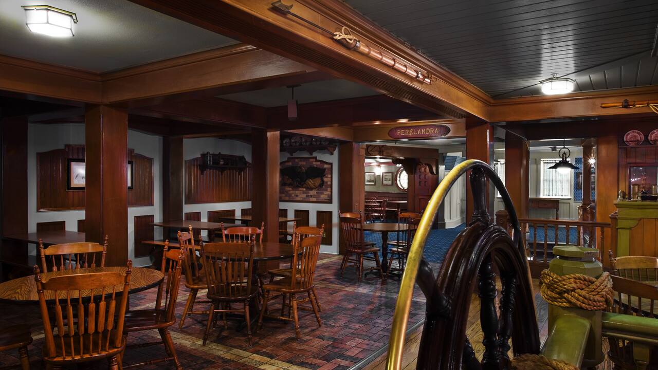 Peça frutos do mar deliciosos, grandes favoritos da Nova Inglaterra, e muito mais em um ambiente marítimo aconchegante para sua refeição.