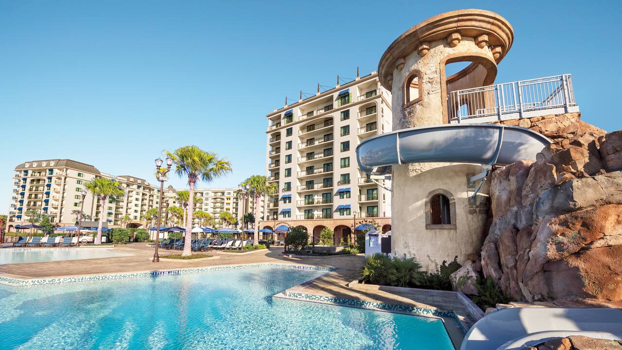 Na Riviera Pool, guarda-sóis estão espalhados ao lado das convidativas águas, que irradiam um brilho dourado nas fachadas de estuque ao redor. Pure vacation bliss awaits at this family-friendly pool, which also features a pool slide that winds around a stately column tower. E pequenas mademoiselles e messieurs certamente se divertirão muito na S’il Vous Play, uma área de recreação aquática interativa para crianças inspirada nos grandes chafarizes públicos da Europa, com destaque ao balé de alegres Personagens de Fantasia.