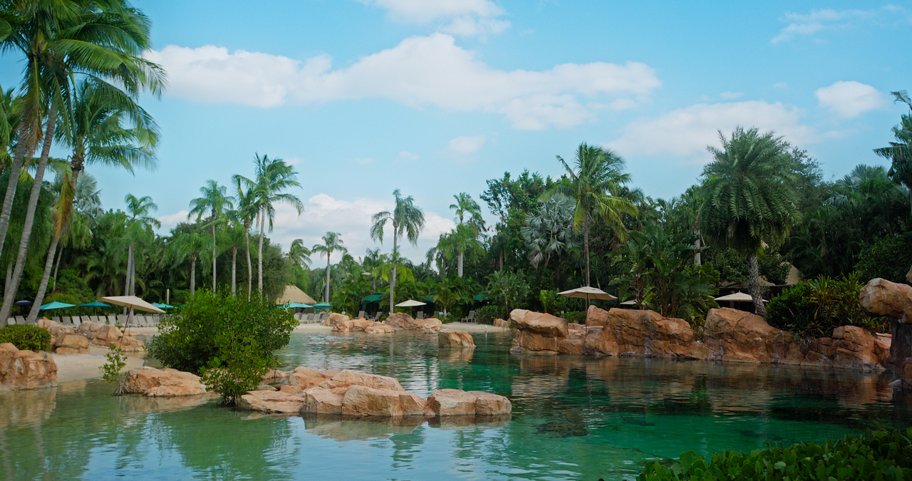 Além disso, todas as manhãs os visitantes do Discovery Cove podem observar o passeio de nossos flamingos desde o The Grand Reef até o pátio perto do Laguna Grill. É o local ideal para relaxar durante o dia neste parque all inclusive.