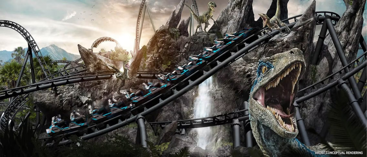 Voando sob as asas de um Pteranodonte, os pequenos terão uma visão incrível de toda a emoção do parque temático abaixo.